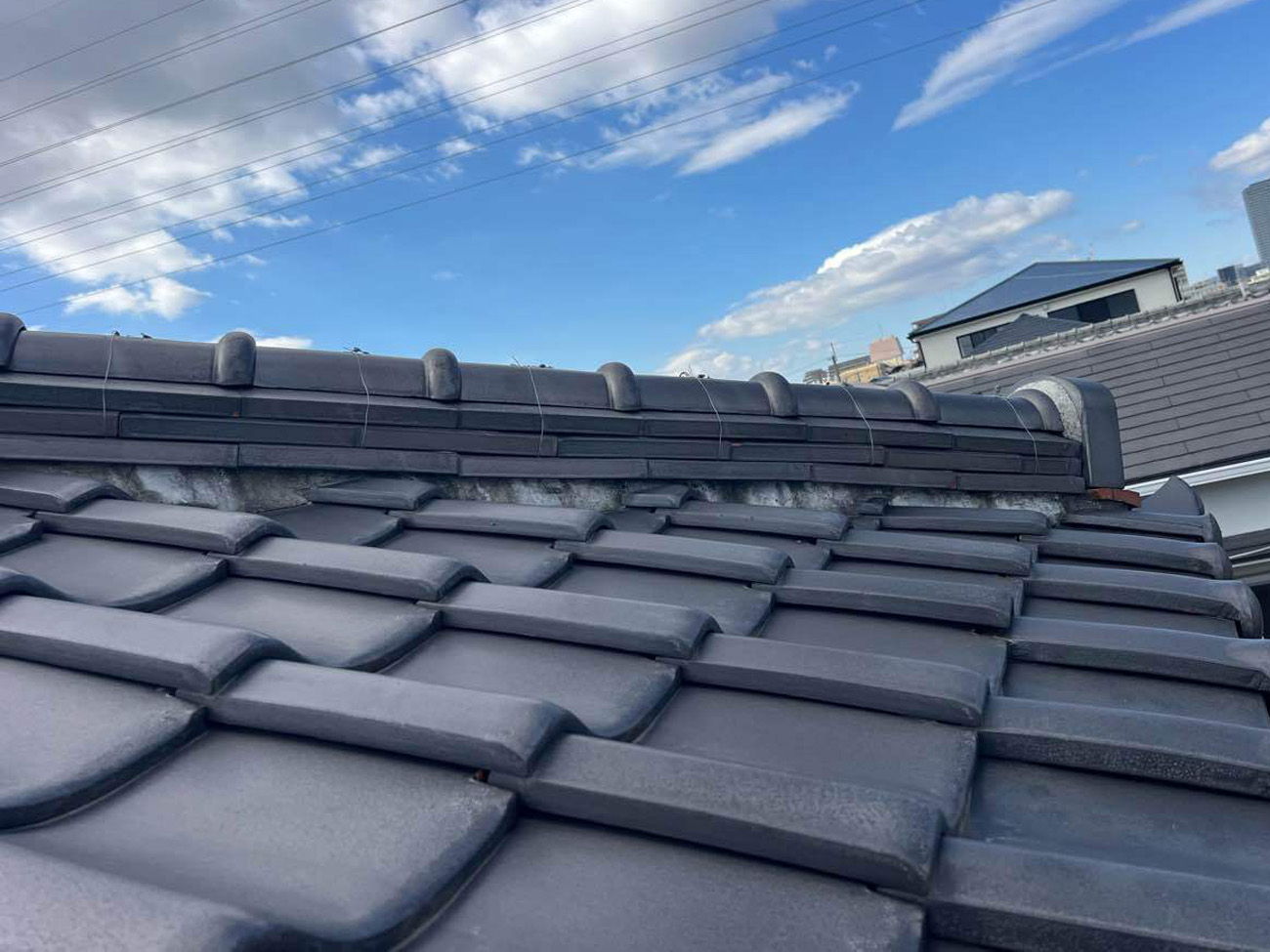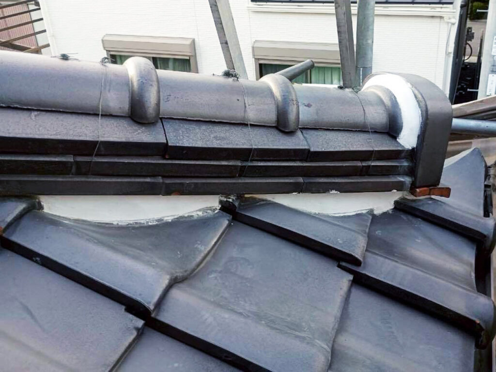 屋根瓦の寿命は約60年。ですが、瓦の隙間を固定する葺き土を守る役目を果たす漆喰の寿命は約20年ほどですので、漆喰打ち替えメンテナンスを行いました。